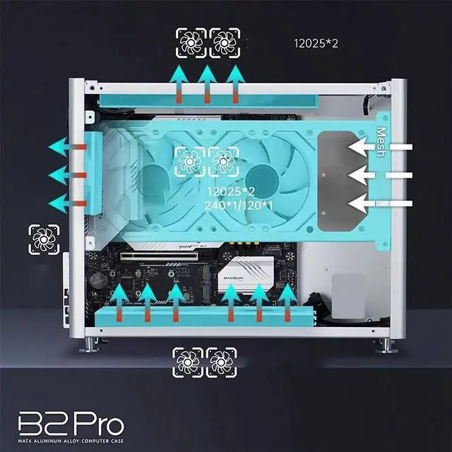 | Fan support: | Support top fan 12025 * 2, rear window fan 9025 * 1, bottom fan 12025 * 2, side support 2 120-25 fans (when not equipped with water cooling, CPU heat sink height is within 105mm) |