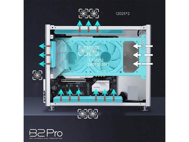 Gintol ZZAW B2 Pro all aluminum chassis computer case micro-ATX,mini-ITX motherboard/ATX/SFX power supply 240 water-cooled computer host small chassis B2 PRO mesh version (front panel opening)