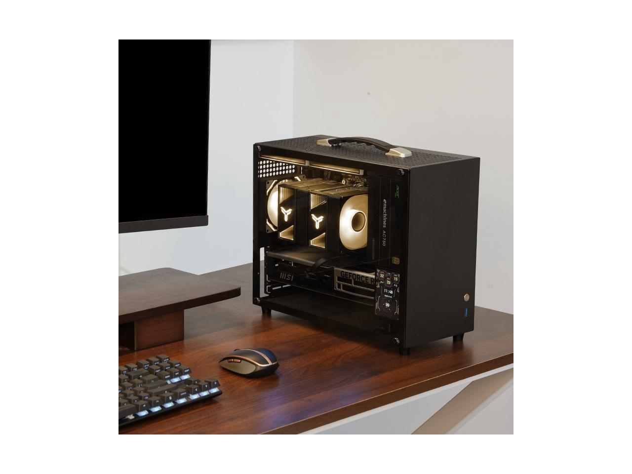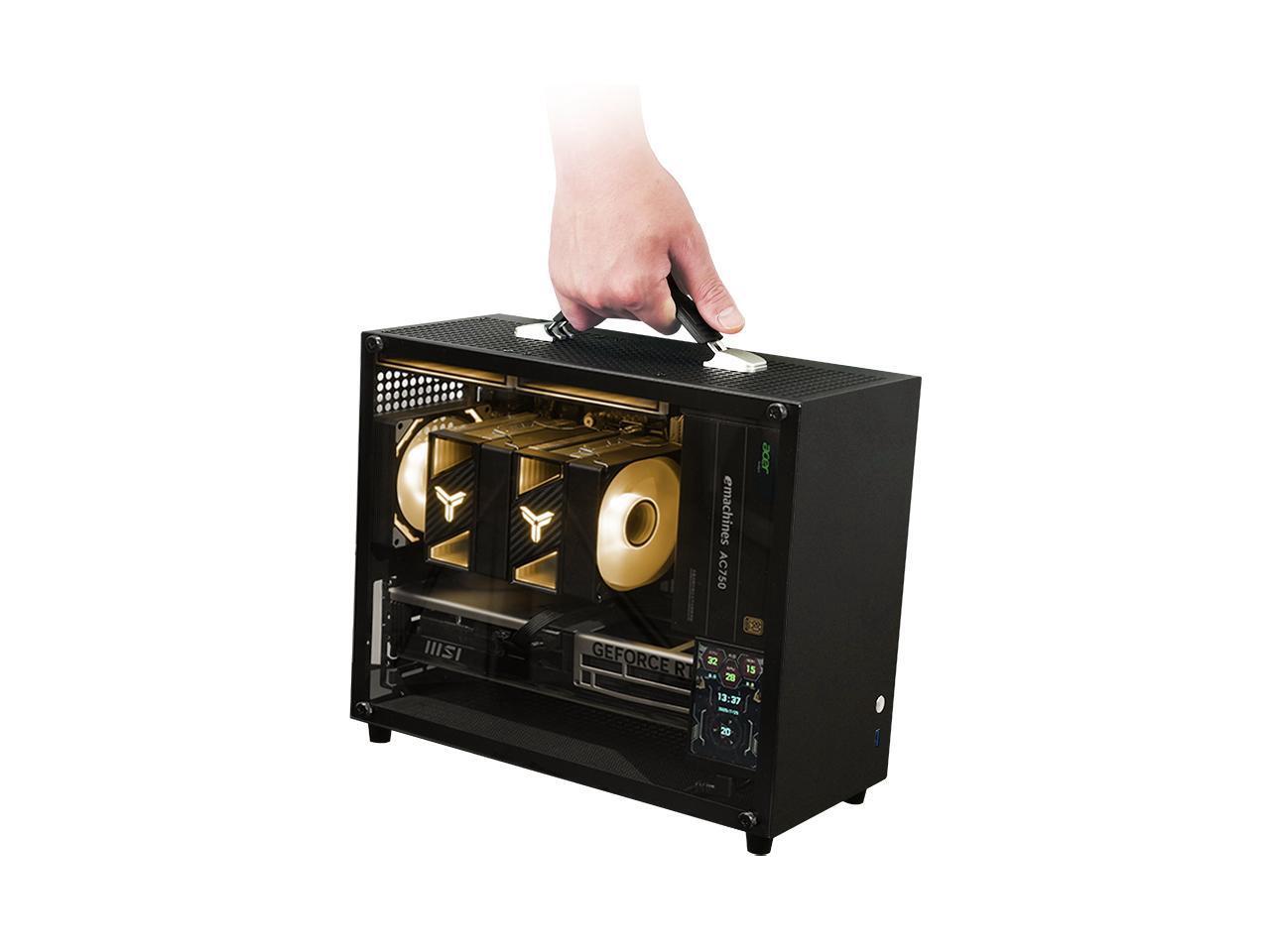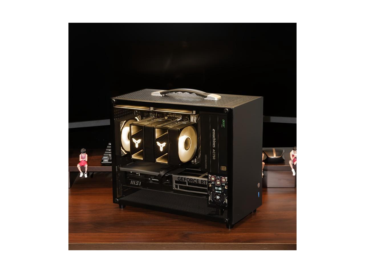 Gintol A600 micro atx case/mini itx case computer Pc case small chassis , portable, side-transparent glass, supports ATX power supply, 328mm graphics card length limit, desktop computer pc case shell