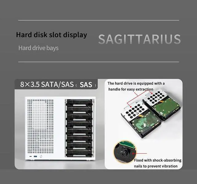 Sagittarius 8-bay NAS Pc Case Computer Case enclosure, ATX power supply, MATX motherboard, full-height PCIe, household storage(Only for NAS computer chassis shell, excluding any other accessories)