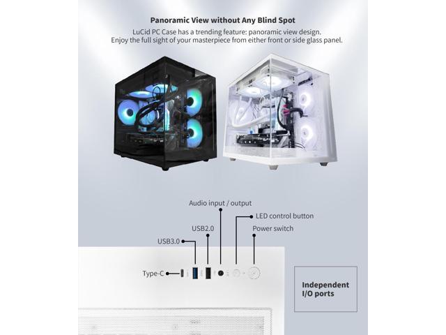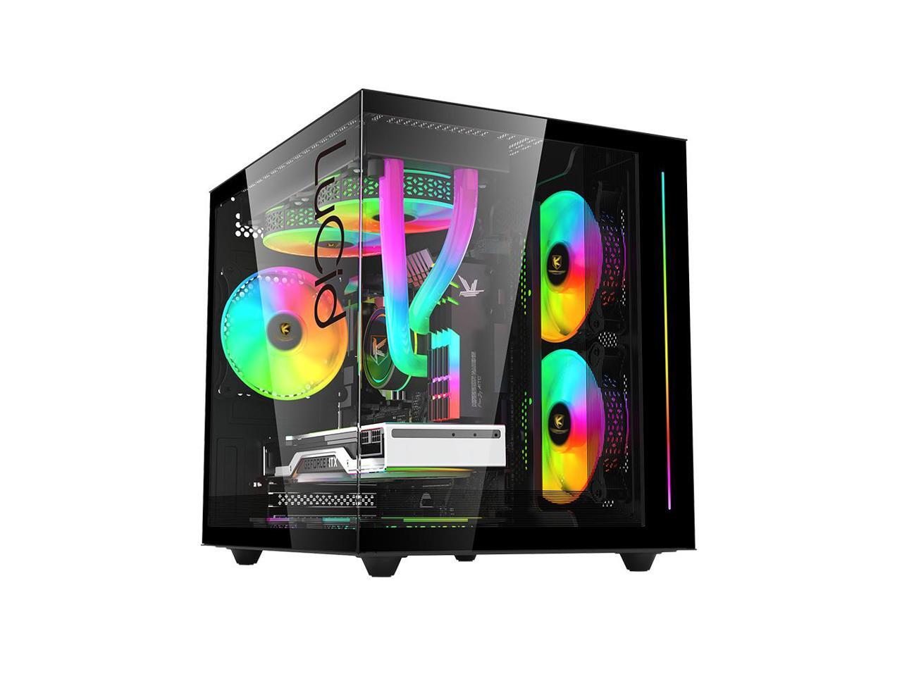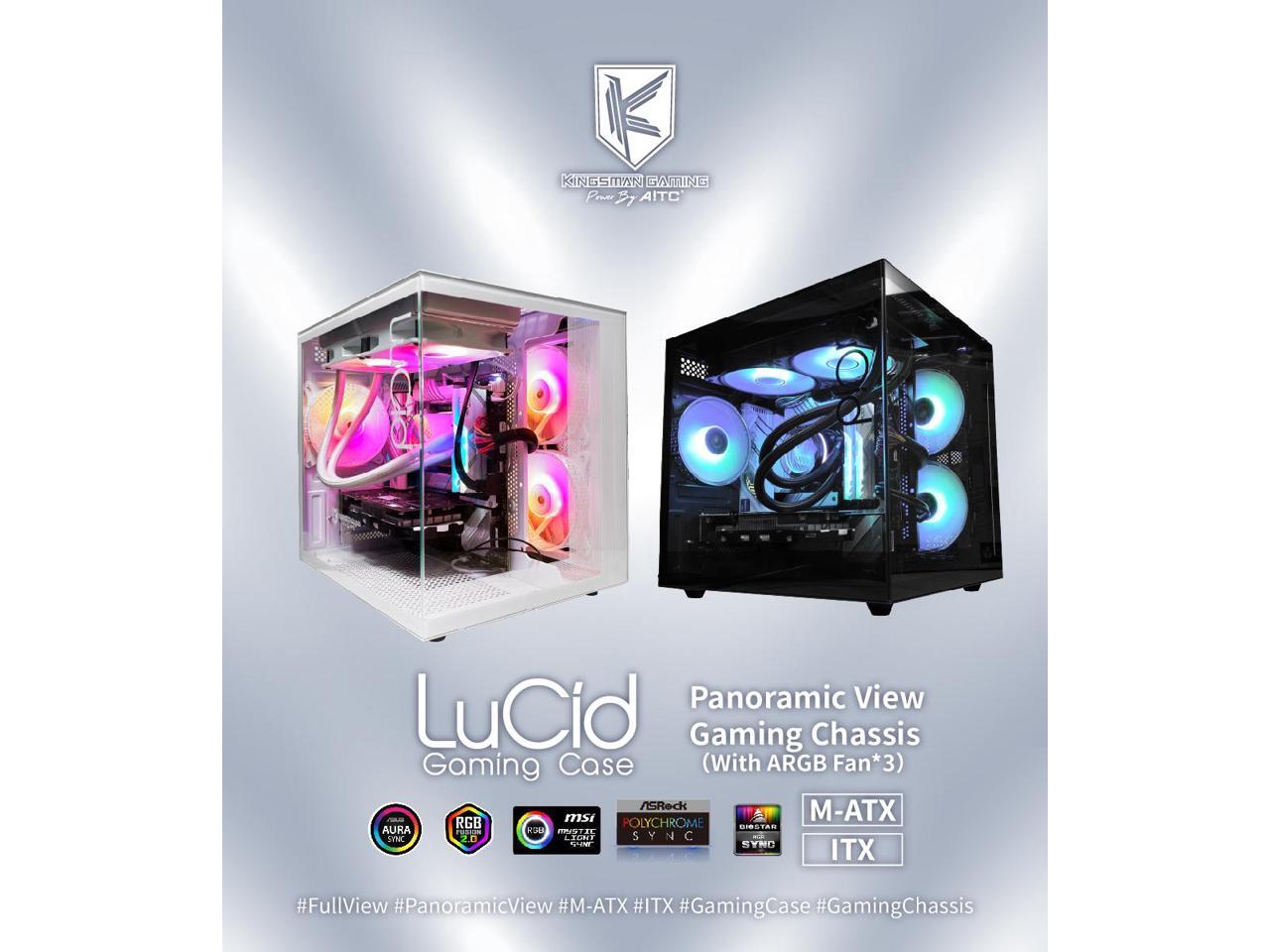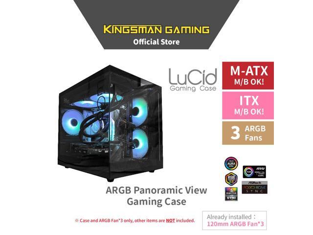 KINGSMAN LuCid M-ATX/ITX Case Mini Tower Computer Case, 270° Full View Dual Tempered Glass Panel, 3 ARGB Fans Included - BLACK