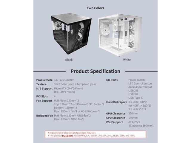 - Motherboard compatibility: Supports Micro-ATX and ITX motherboards