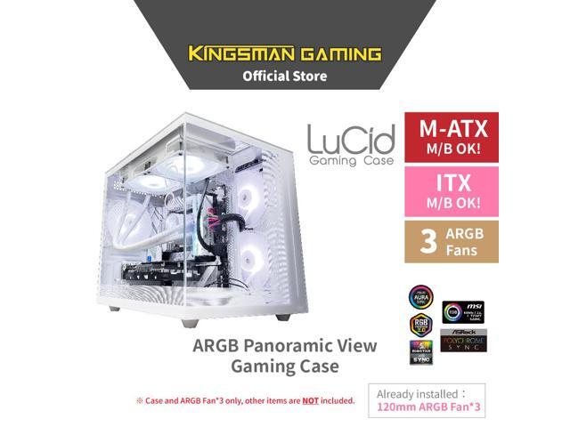 KINGSMAN LuCid M-ATX/ITX Case Mini Tower Computer Case, 270° Full View Dual Tempered Glass Panel, 3 ARGB Fans Included - WHITE