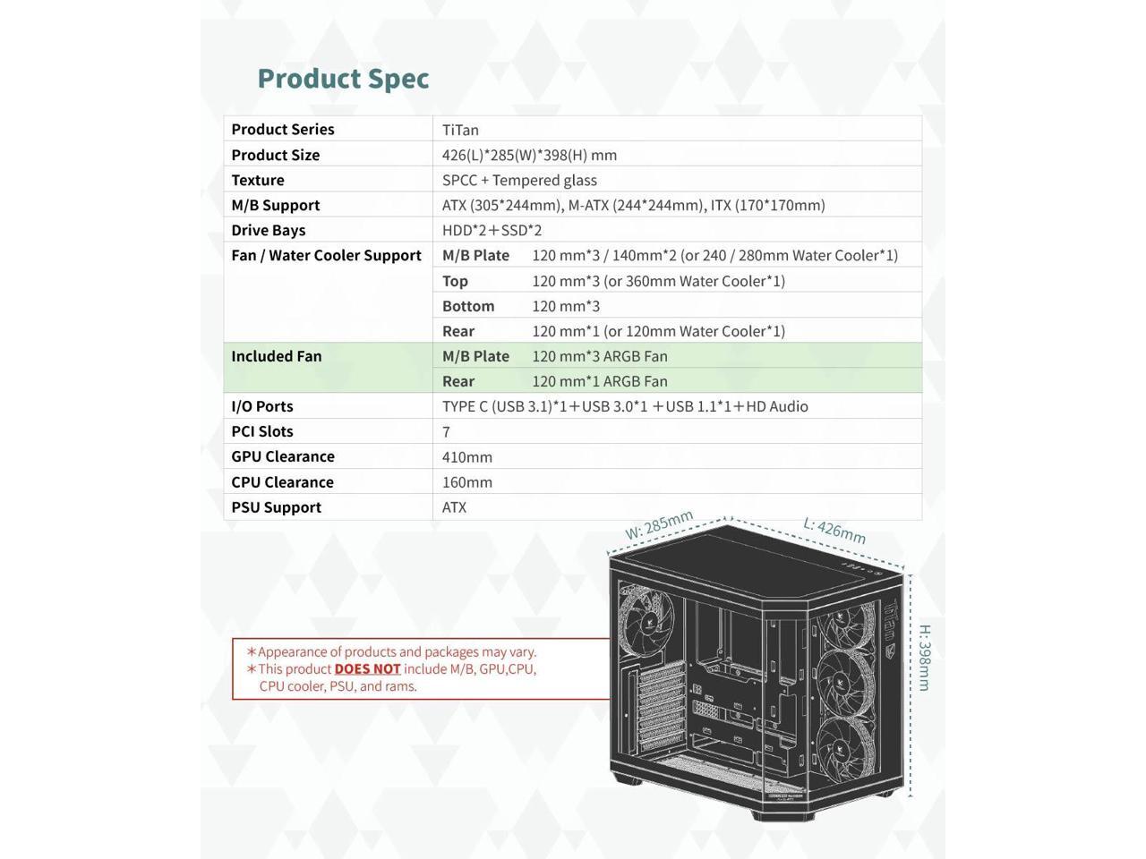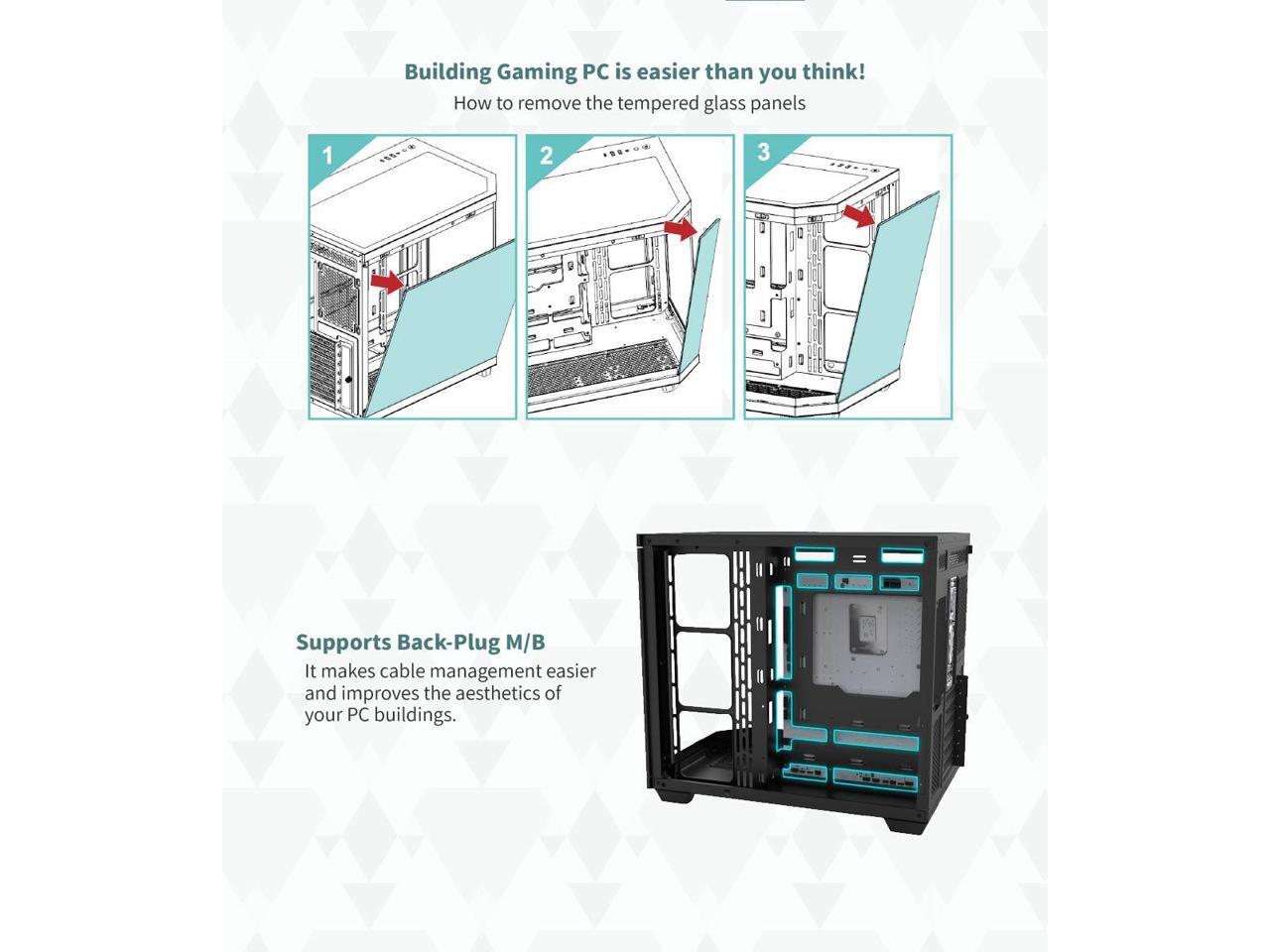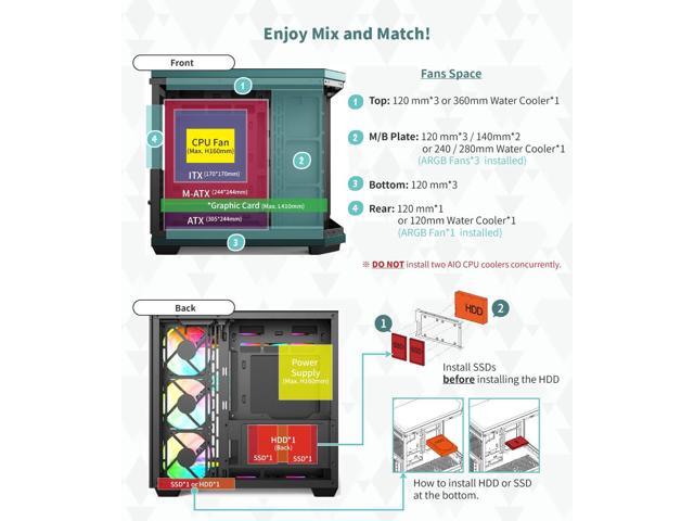 - 10 Fan Capacity: The case already has 4 ARGB fans (additional fans can be install : bottom 3 x 120mm fans, top: 3 x 120mm fans) for excellent cooling and gaming performance