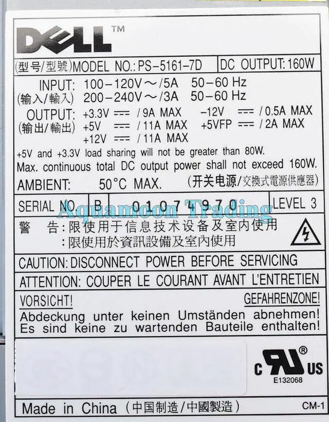 Voltage: 3.3 V DC @ 9 A5 V DC @ 11 A12 V DC @ 11 A-12 V DC @ 500 mA5 V DC @ 2