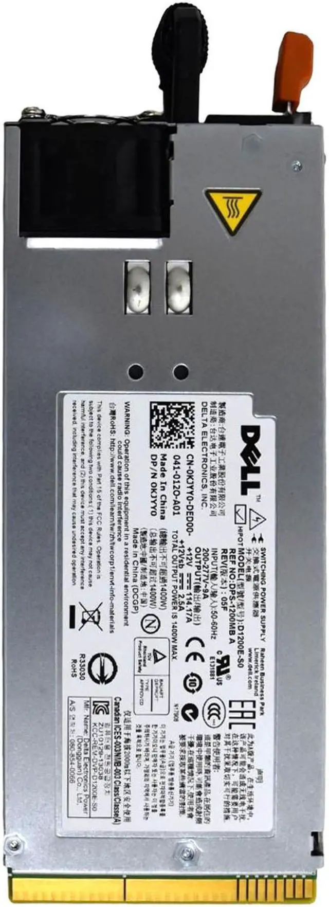 Dell PowerEdge C5125 1400W High-Performance Power Supply (part number KJYY0) is a robust and efficient power solution designed specifically for the Dell PowerEdge C5125 server. This hot-swappable power supply unit (PSU) provides 1400 watts of power, ensuring reliable and consistent performance even in demanding computing environments. Its hot-swappable feature allows for easy replacement without needing to power down the server, minimizing downtime and maintaining continuous operation. Built to meet Dell's stringent quality standards, the KJYY0 PSU ensures energy efficiency and optimal power management, making it an ideal choice for maintaining the performance and reliability of your Dell PowerEdge C5125 server.