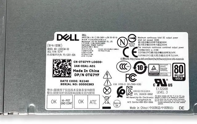 Dell Precision 3630 Tower 300W Power Supply Unit (L300EGM-00, TG7YF) is a reliable and efficient PSU designed specifically for the Dell Precision 3630 Tower Workstation. With a 300W power output, it provides stable and consistent performance for high-end computing tasks. This OEM replacement unit ensures compatibility and seamless integration with the system. It features energy-efficient design, overvoltage protection, and optimized cooling, making it an ideal solution for workstations handling demanding applications such as graphic design, engineering, and data processing.