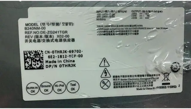 For Dell 7040 3650 3040 3046 240W Power Supply Unit PSU H240EM-00 P1-8Pin P2-4Pin