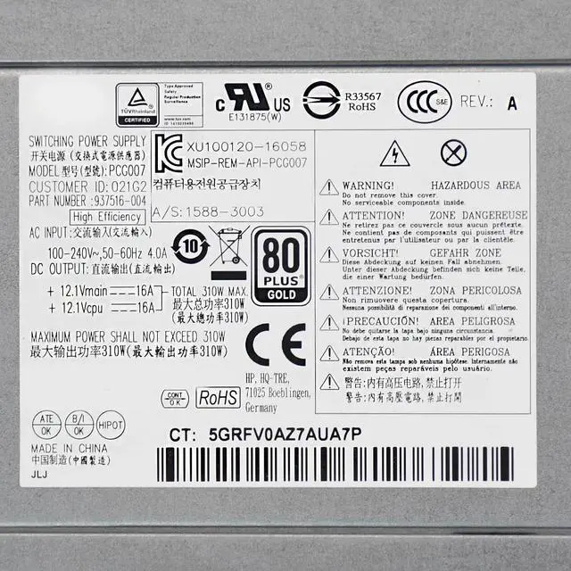 • For H-P 800 600 480 280 G3 G4 Power Supply 310W PCG007 DPS-310AB-1A 937516-004