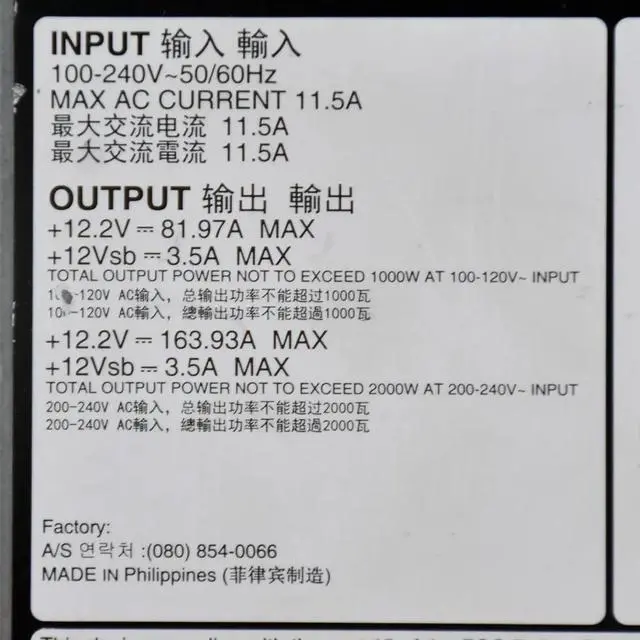 • for D-ELL R830 T630 2000W Server Power Supply Z2000E-S1 039K3H Psu