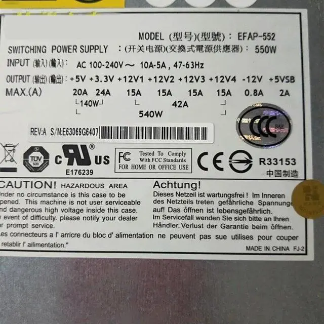 PSU For Great Wall 600W Replace Etasis R520 G4 2U 550W Switching Power Supply EFAP-552