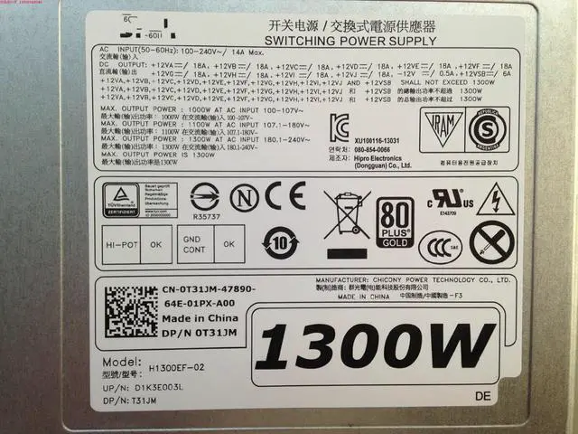 • For Dell T7600 T7610 T7910 Workstation Power 1300W 09JX5 H1300EF-00 H3HY3