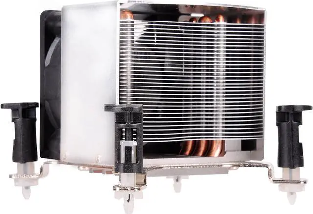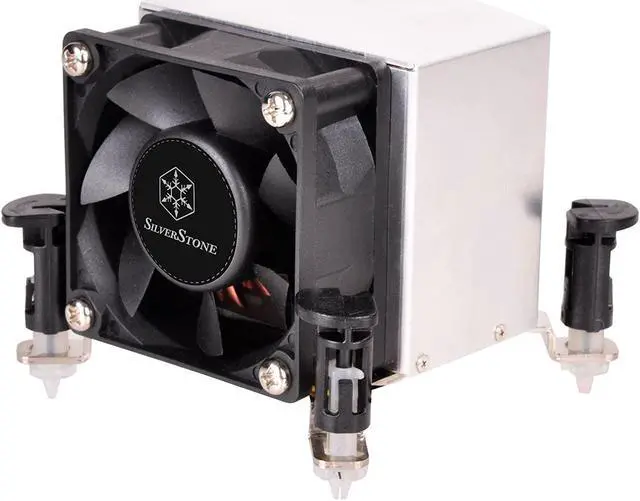 SilverStone AR09-115XP is a CPU cooler designed for 2U rack mount server or small form factor cases. Its features three 6mm thick copper heat pipes connected to the base using heat-pipe direct contact (HDC) technology and a 60mm dual ball bearing PWM fan. In addition, its heatsink fins have wave-shaped design that works efficiently with the included air duct to help quickly wick away heat for exceptional CPU cooling performance.