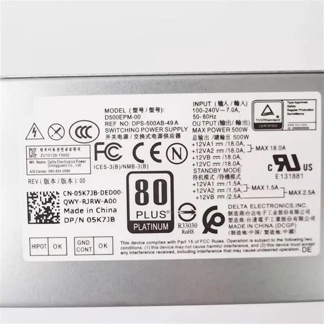 • 0Y7R0X 05K7J8 For 7080 7070 7060 3050 MT XPS 8940 Power Supply 500W 5K7J8 Y7R0X D500EPM-00 DPS-500AB-49A