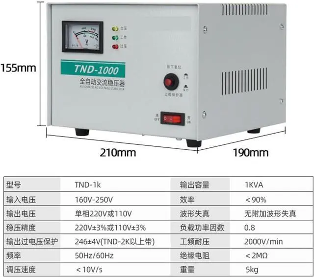 • 1Pcs Fully Automatic Voltage stabilizer TND-1KVA Household Single-Phase air Conditioner Refrigerator Voltage stabilizer Power Supply Pure Copper