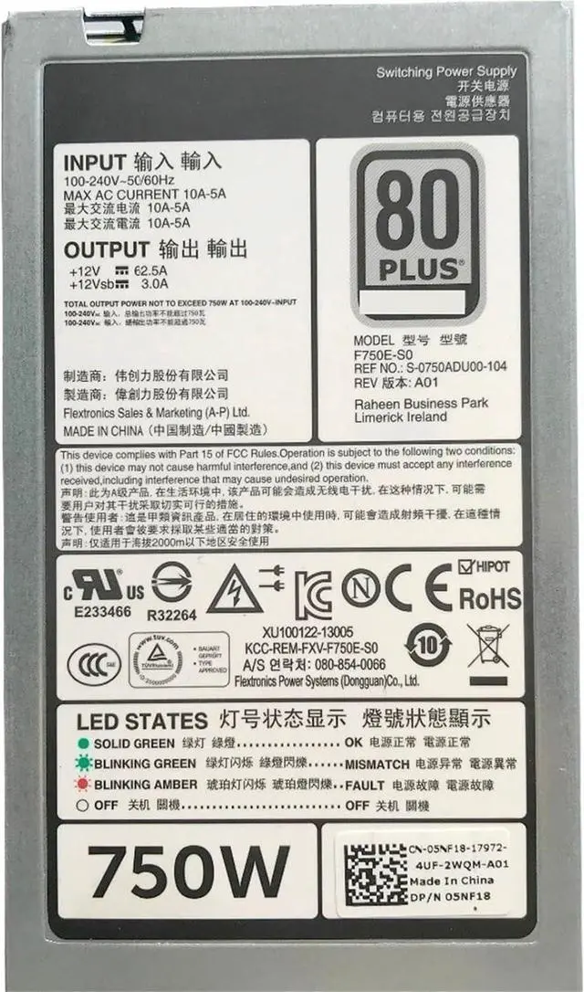 • 5NF18 05NF18 for R620 520 720 820 920 T420 750W Power Supply E750E-S0 DPS-750AB-29 A F750E-S0 D750E-S1/S3