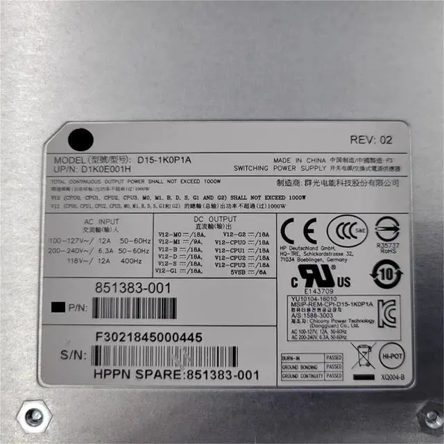 • 1pc PSU for Z4 Z6 G4 1000W Switching Power Supply D15-1K0P1A 851383-001