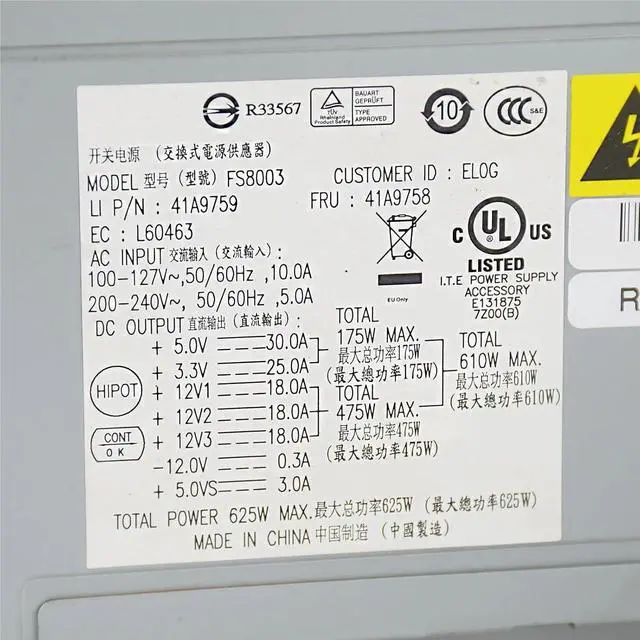 • for S20 Workstation Power Supply FRU41A9758 625W FS8003 PSU