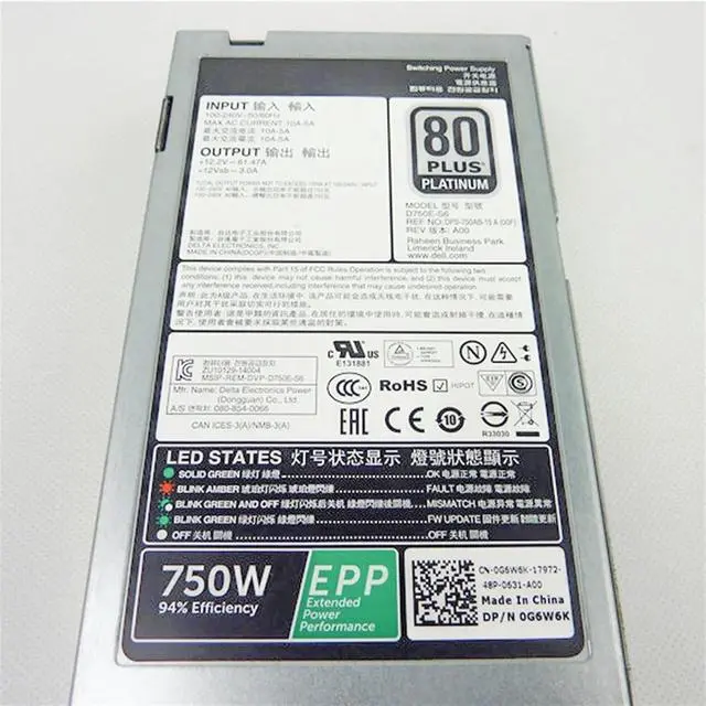 • for R630 R730 R730XD 750W Power Supply 80 Plus D750E-S6 DPS-750AB-15A 0G6W6K G6W6K CN-0G6W6K