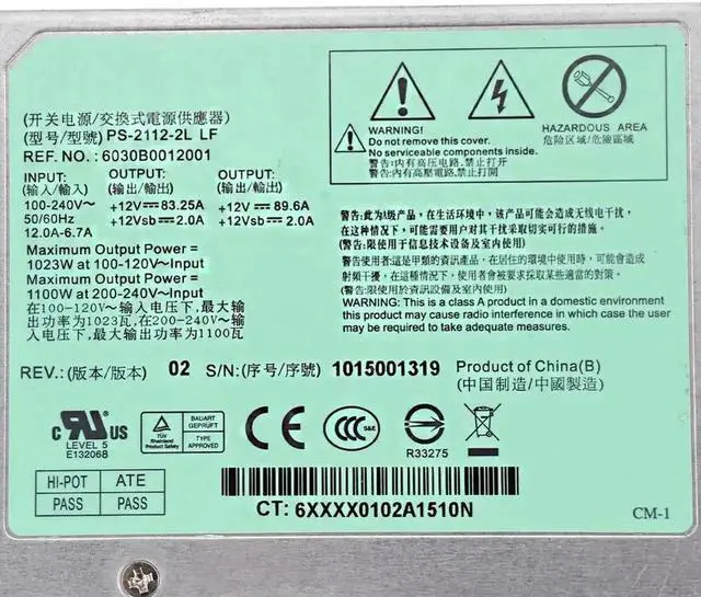 for D-ELL C6100 Server Redundant Power Supply PS-2112-2L LD LF 1100W