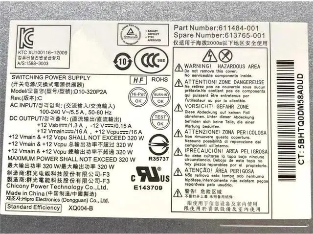 • 320W 503377-001 508153-001 D10-320P2A 611484-001 613765-001 for 6000 6200 6300 8000 8100 8200 8300 600 800 G1 MT Power Supply