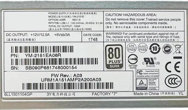 Power Supply 150W PN: YM-2151EA06R for Switch Server