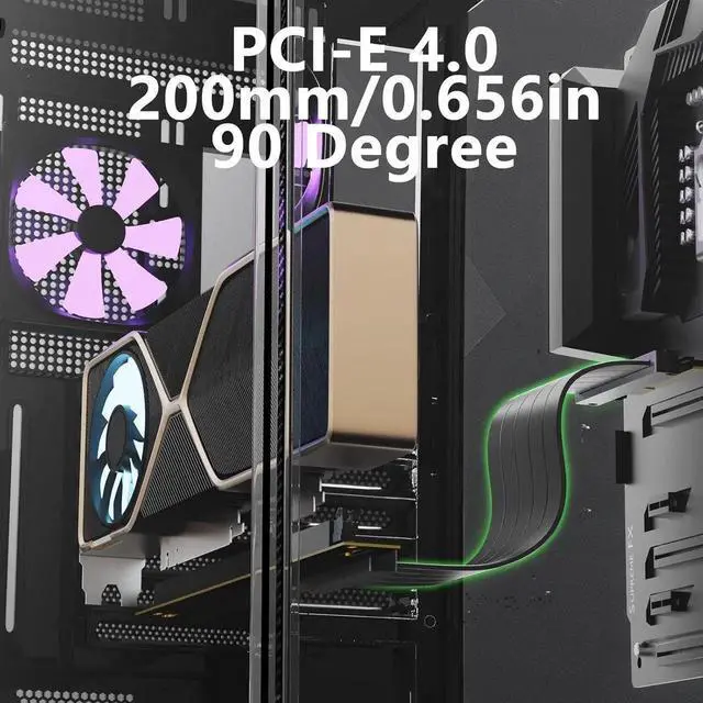 • PCIE 4.0 Transport StandardUp to 64GBS, PCIE 4.0 compliant and maintains the highest backward-compatible transfer rate, 90-degree angle connector ensures stable transmission and easy installation.