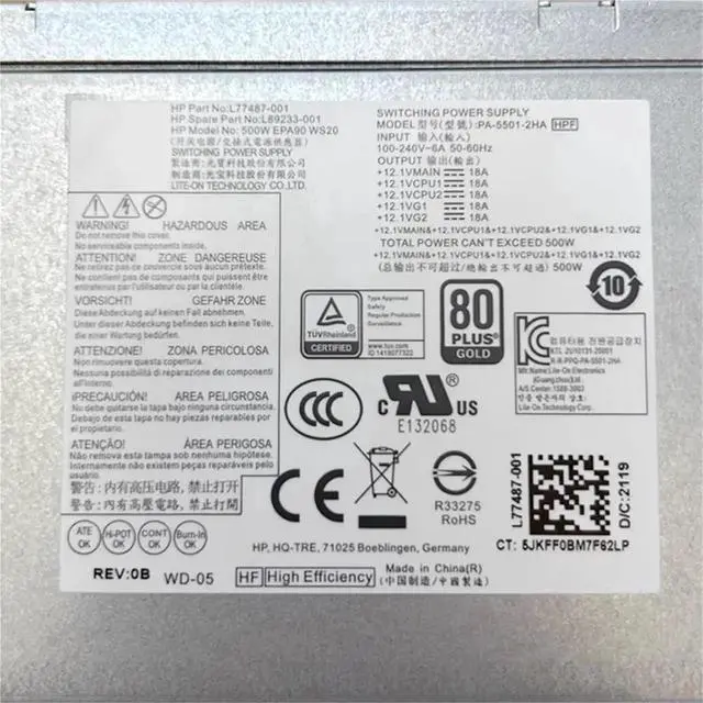 Aomoproing 500W power supply is a direct drop-in replacement for HP OEM models PA-5501-2HA, DPS-500AB-51A and part numbers L77487-001, L89233-001, PCG007. It is specially designed for HP ProDesk / EliteDesk 400, 600, 680, 800, 280, 288, 480 G3 G4 Micro Tower desktops.