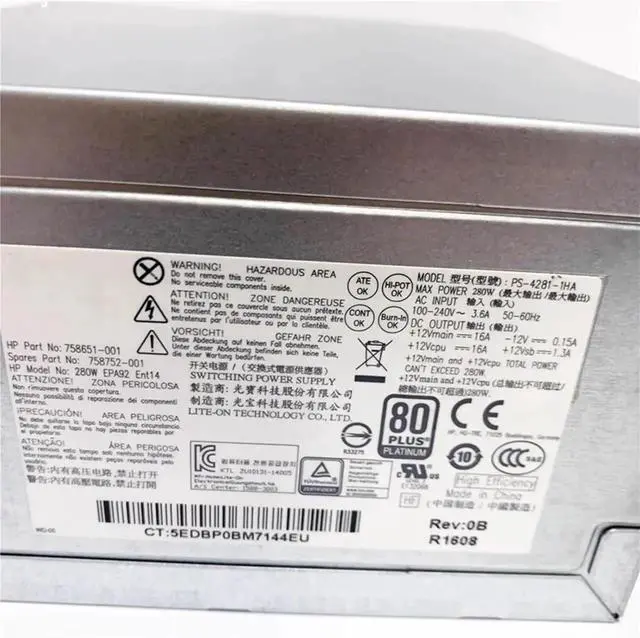 Aomoproing 280W 6-Pin ATX Switching Power Supply is a precision-built replacement for HP ProDesk G2 Tower desktop computers. It fully matches OEM specifications for models PS-4281-1HA, D14-280P1A, DPS-280AB-5A and part numbers PCE015, 758752-001, 758652-001, ensuring perfect fit, pin-out, and electrical performance for HP G2 TWR systems.