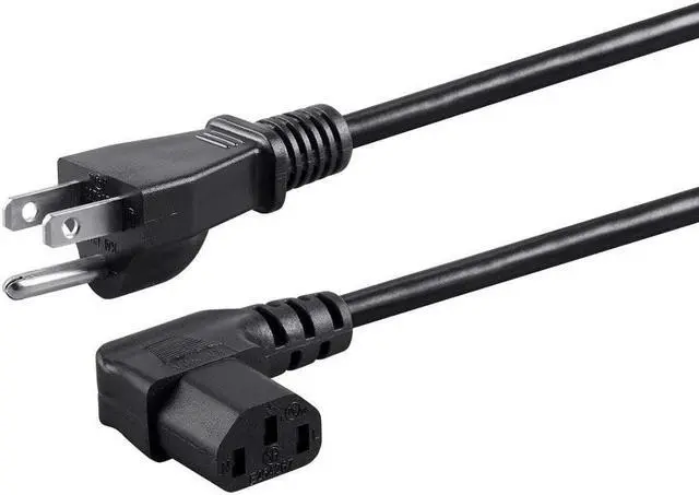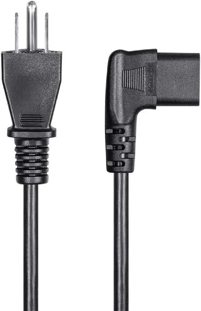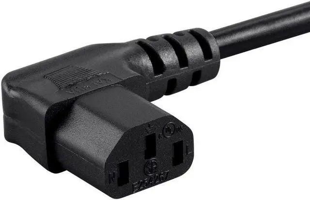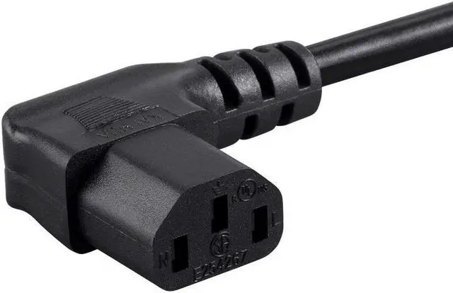 Whether the power cable that came with your equipment is too long or too short, you can find replacement cables in the perfect length right here. These Right Angle Power Cords feature a 90-degree C13 connector (PC side), which allows for better placement in tight situations. They are made to the same stringent standards as are standard PC power cables, with the added convenience of a right angle connector. The standard 3 prong wall plug (NEMA 5-15p) to PC connector (IEC C13) cable was made commonplace by PC power supplies. Today, they can be found providing power connections for many different products, such as computers, monitors, printer, projectors, power adapters, and HDTV's.