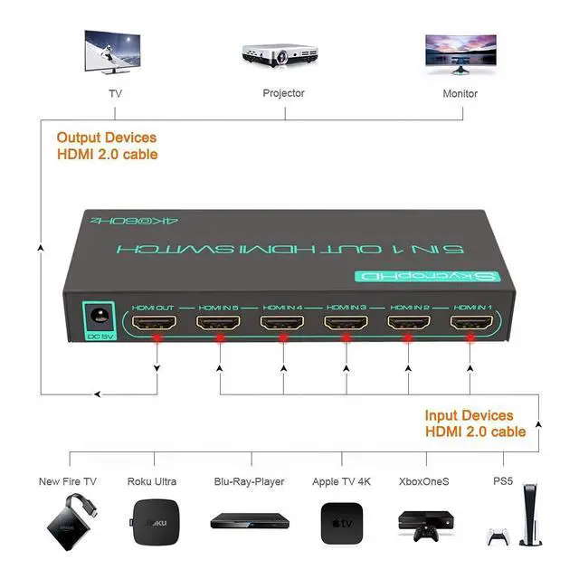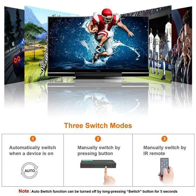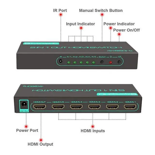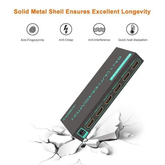 ![]() 4K@120Hz 4x1 HDMI Switch | ![]() 4K@120Hz 4x1 HDMI Switch | ![]() 4K@60Hz 5x1 HDMI Switch | ![]() 4K@60Hz 5x1 HDMI Switch with Audio Extractor | ![]() 4K@60Hz 5x1 HDMI Switch | |