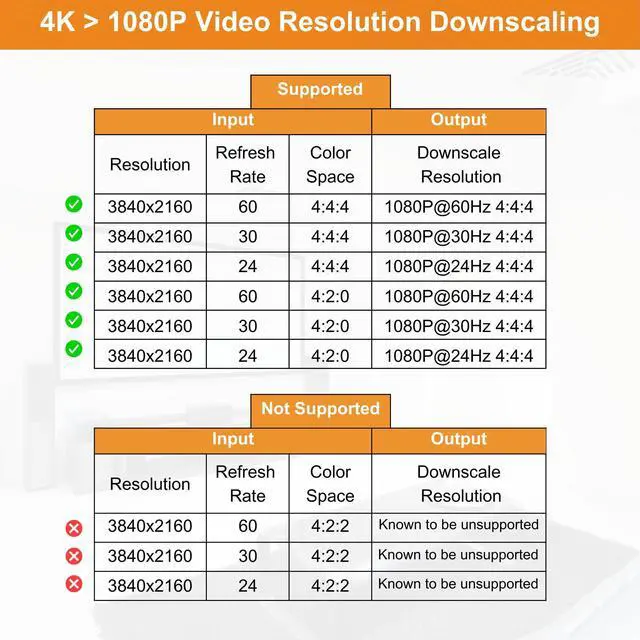 • Supports 4K to 1080p, downscaling up to all output resolutions