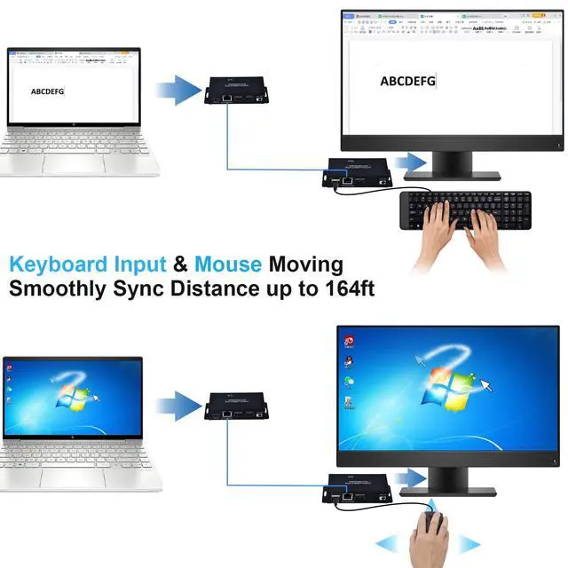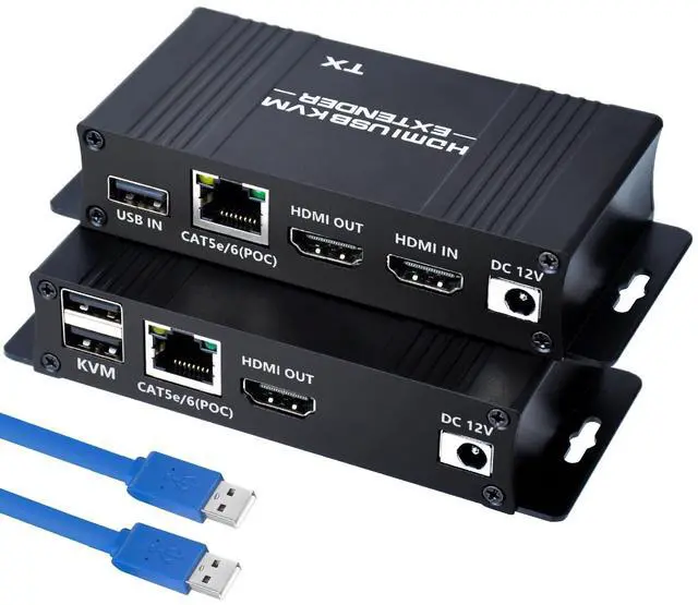 • HDMI KVM USB Extender up to 164ft: Transmit HD video, keyboard, and mouse signals over any Cat5e/6 Ethernet cable to control your PC, Gaming devices from another roomno lag, no dropped frames. Perfect for gamers, home theaters, or multi-room offices! Ideal for hiding noisy computers or streamlining your gaming setup!