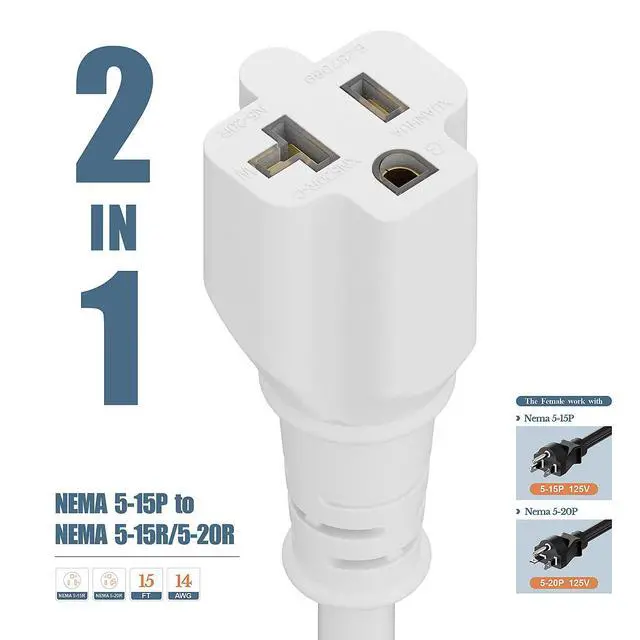 . NEMA 5-15P 15AMP Male Plug to NEMA 5-15/20R COMB AC Power Cord