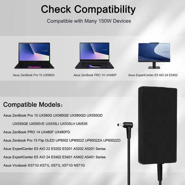 FLGAN 150W Laptop Charger for Zenbook Pro 15 Pro 17, 20V /7.5A AC Adapter Vivobook Pro 14 Pro 15 Pro 16 Pro 14X Pro 16X (4.5 * 3.0mm)