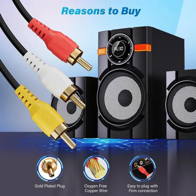 • Adoreen 3 RCA Cable 10 Ft/2 Pack Audio Video Composite Male to Male DVD Cable Gold-Plated Low Loss Stereo AV TV Cable Cord with Noise Reduction for VCD Satellite Stereo System Home Theater Receiver