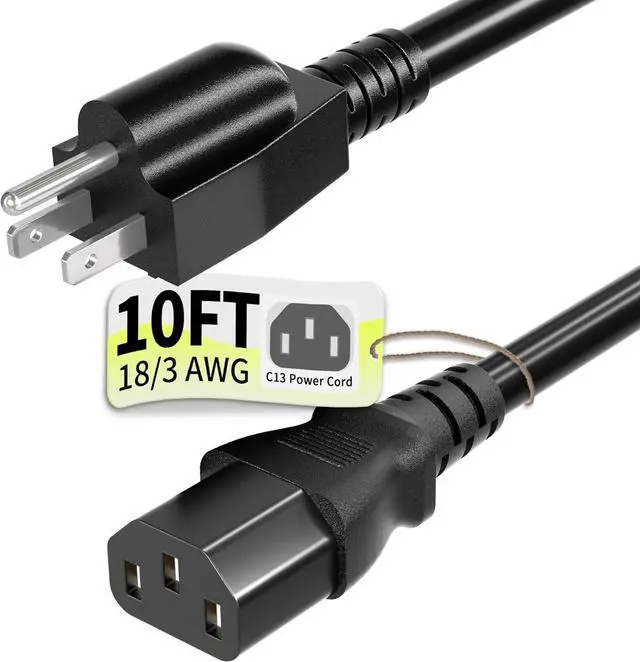 : 10 ft 3 prong Replacement AC Power Cord Cable NEMA 5-15P to C13 18AWG 10A 125V ETL listed