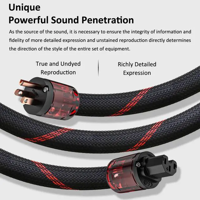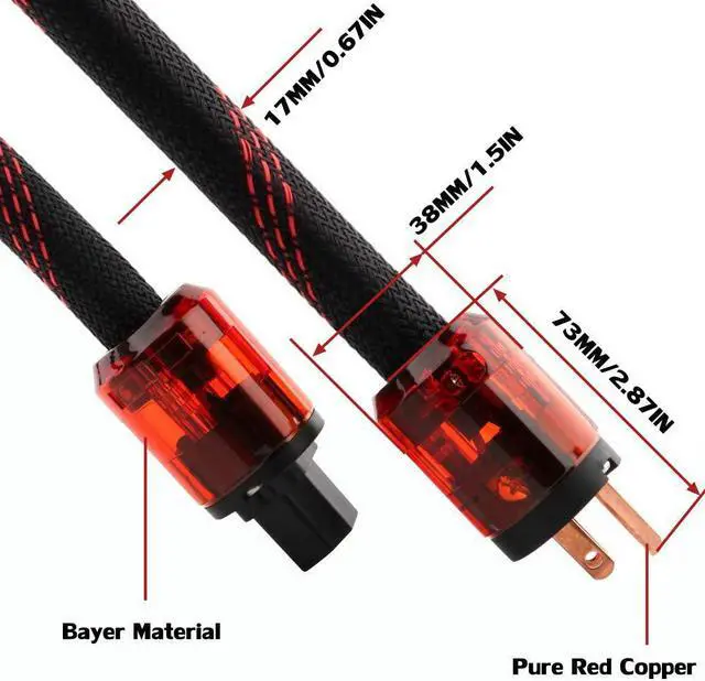 Cable diameter: 17MM well built durable and sturdy. HIFI power cord work with power filter turntable amplifier CD player DAC and any hifi components. AUDIOPHILE power cable greatly reduces noise and enhances the entire audio system with wider dynamics. SUPER PURE copper multi conductors made perfect replacement for old unreliable power cables.