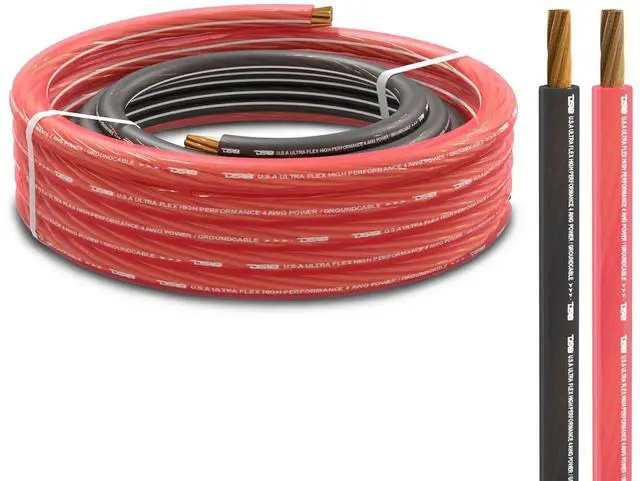COMBO PACK: 4-GA Ultra Flex Ground Wire 5 Feet Black - 4-GA Ultra Flex Power Wire 20 Feet RedRUGGED PVC JACKET FOR MAXIMUM FLEXIBILITY & DURABILITY: Low memory flexible soft-touch jacket material is perfect for routing in hard to reach places. Highly durable automotive grade wire (GPT) is resistant to extreme temperatures liquid oil gas abrasions and high impactQUALITY
