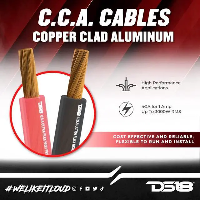 COST EFFECTIVE AND RELIABLE: DS18 now offers a power and ground combo pack so now you don't have to bother with picking and choosing your power wireCOPPER CLAD ALUMINUM (CCA) - High quality stranded CCA wire offers strong power transfer performance while remaining lightweight with maximum flexibility.