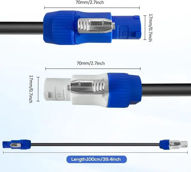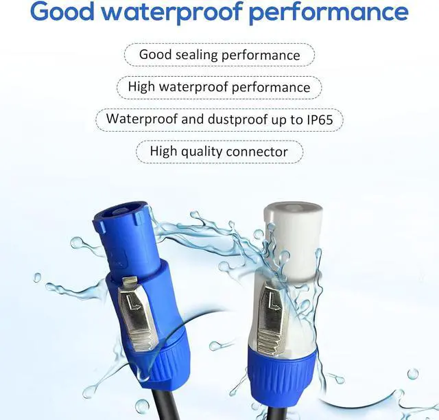 Adapt to harsh environment---This powercon power cable can easily connect multiple power links to lighting cable management (unlimited links). It can adapt to various harsh environments with stable transmission and high wear resistance when connected. The waterproof and dustproof level can reach IP65 making it a high-quality lockable waterproof power extension cable. (Please note the difference between input and output connectors) High-quality materials---The input to output cable body of this power supply is made of professional PVC material from high-quality stage lighting equipment which can be bent freely and has excellent flexibility. The inner core is made of oxygen free pure copper which reduces resistance and heating speed.