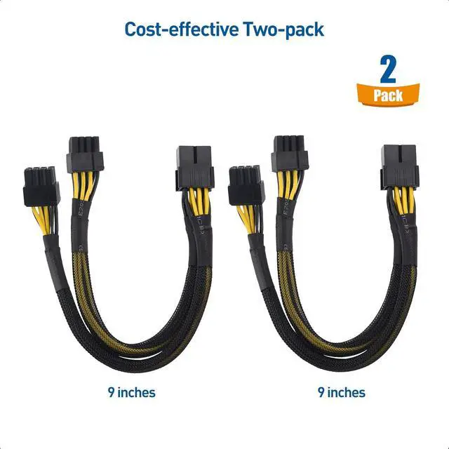 • Cable Matters 2-Pack PCIe 8 Pin to Dual 8 Pin (6+2) Female to Male PCIe Power Adapter for GPUs - 9 Inches