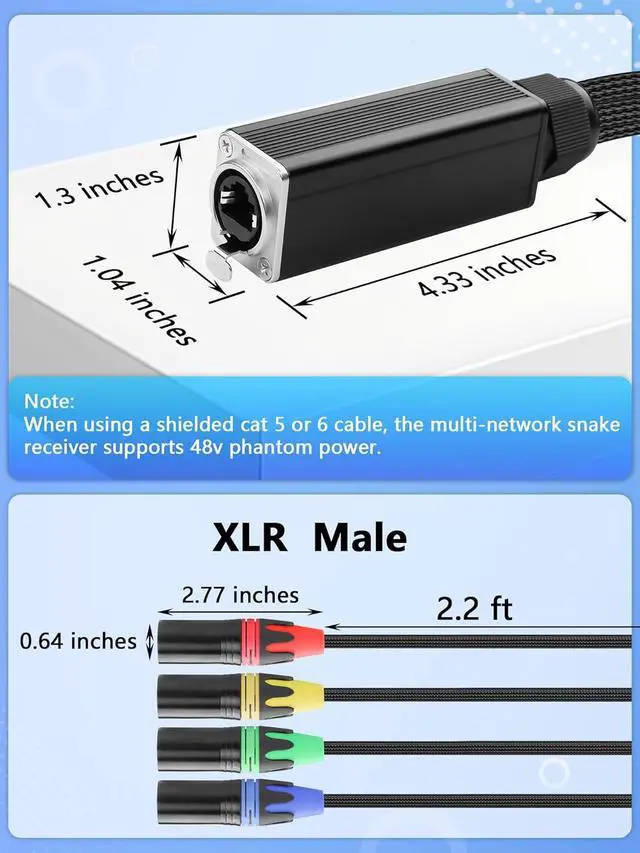 These robust connectors prevent accidental disconnections providing reliable signal transmission even in the most demanding situations. The system is compatible with standard Cat5/Cat6 Ethernet cablesPhantom Power Support - Safely transfer 48V phantom power through shielded cables making it perfect for condenser microphones DI boxes and other studio equipment that requires phantom power. This eliminates the need for separate power supplies and keeps your setup streamlined. The adapter ensures stable power delivery to your audio equipmentVersatile Applications & Easy Installation - Designed for gigging musicians touring bands audio engineers and venue technicians this adapter is easy to install and use.