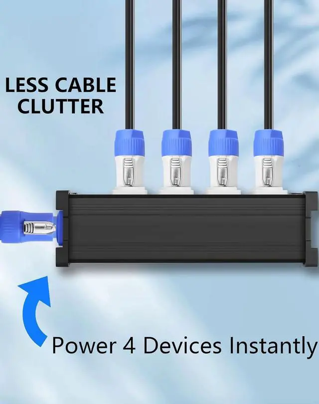 Devices Instantly: 4 Way powerCon power spitter connect up to 4 230W fixtures (like LED pars beam lights) or other pro gear simultaneously from a single power source. Maximize stage potential without extra distro boxesSetup