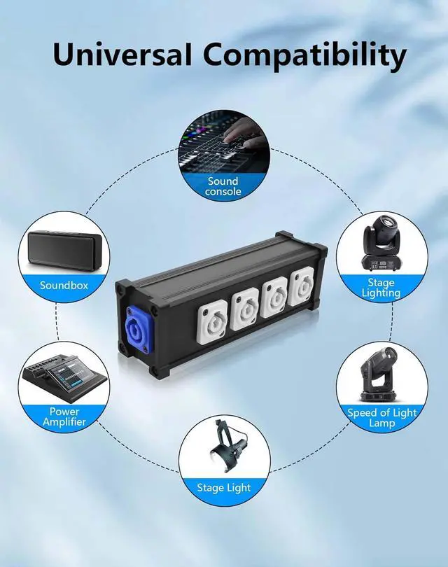 Gear Compatibility: Features 4 PowerCON outlets perfect for powering LED PAR lights beam movers haze machines media servers stage monitors and other critical production equipment