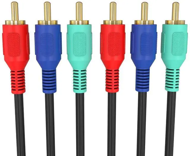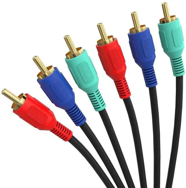 RCA Component Video Cable (YPbPr) eliminates unwanted noise & feedback and provides pure clear video. DVD Player Cable with fully molded flexible PVC Jacket Oil-resistant Wear-resistant Acid-resistant and alkali-resistant prolongs its service life. Home Theater cable with Gold-Plated connectors for easy and smooth connections and to prevent corrosion. Red Green and Blue for Video signal. 3-RCA Cable Connects Camcorder Satellite receiver DVD player Projector or any source with 3RCA component video to your TV monitor or A/V receiver.