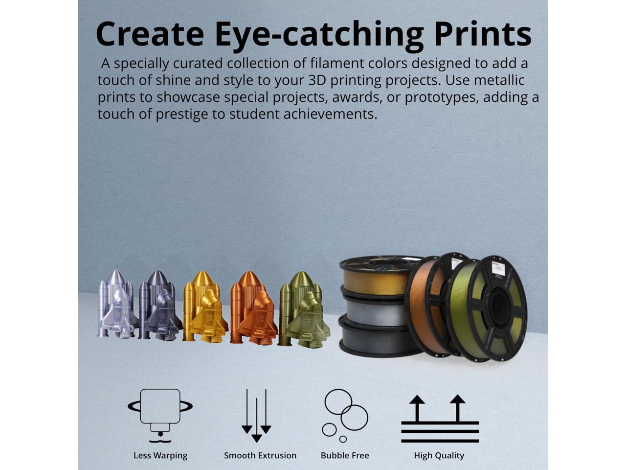 - Metallic Color Palette: Includes five eye-catching metallic colors, they are Patina Bronze, Sunset Copper, Shimmering Silver, Crown Gold, and Midnight Metal to elevate your 3D printing projects