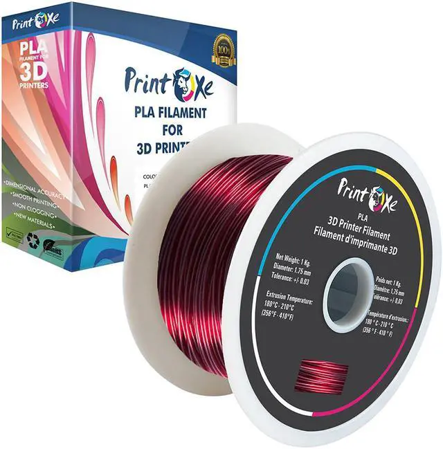 1st Grade 3D Transparent Red / Clear Red Colour PLA Printer Filament Net Weight: 1Kg ( 2.2 LBs) Filament Material Dimensional Accuracy: +/- 0.03 mm Diameter: 1.75 mm Material: PLA