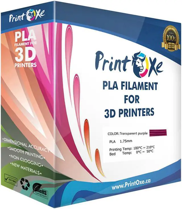 1st Grade 3D Clear Purple Colour PLA Printer Filament Net Weight: 1Kg ( 2.2 LBs) Filament Material Dimensional Accuracy: +/- 0.03 mm Diameter: 1.75 mm Material: PLA