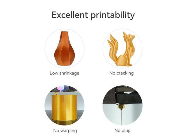 - Wide ApplicationSilk Metal PLA adds metallic and shiny effect based on ordinary Silk PLA, which is perfect for arts & crafts projects, vases and any other 3D printed items that could benefit from a outstanding shiny appearance.